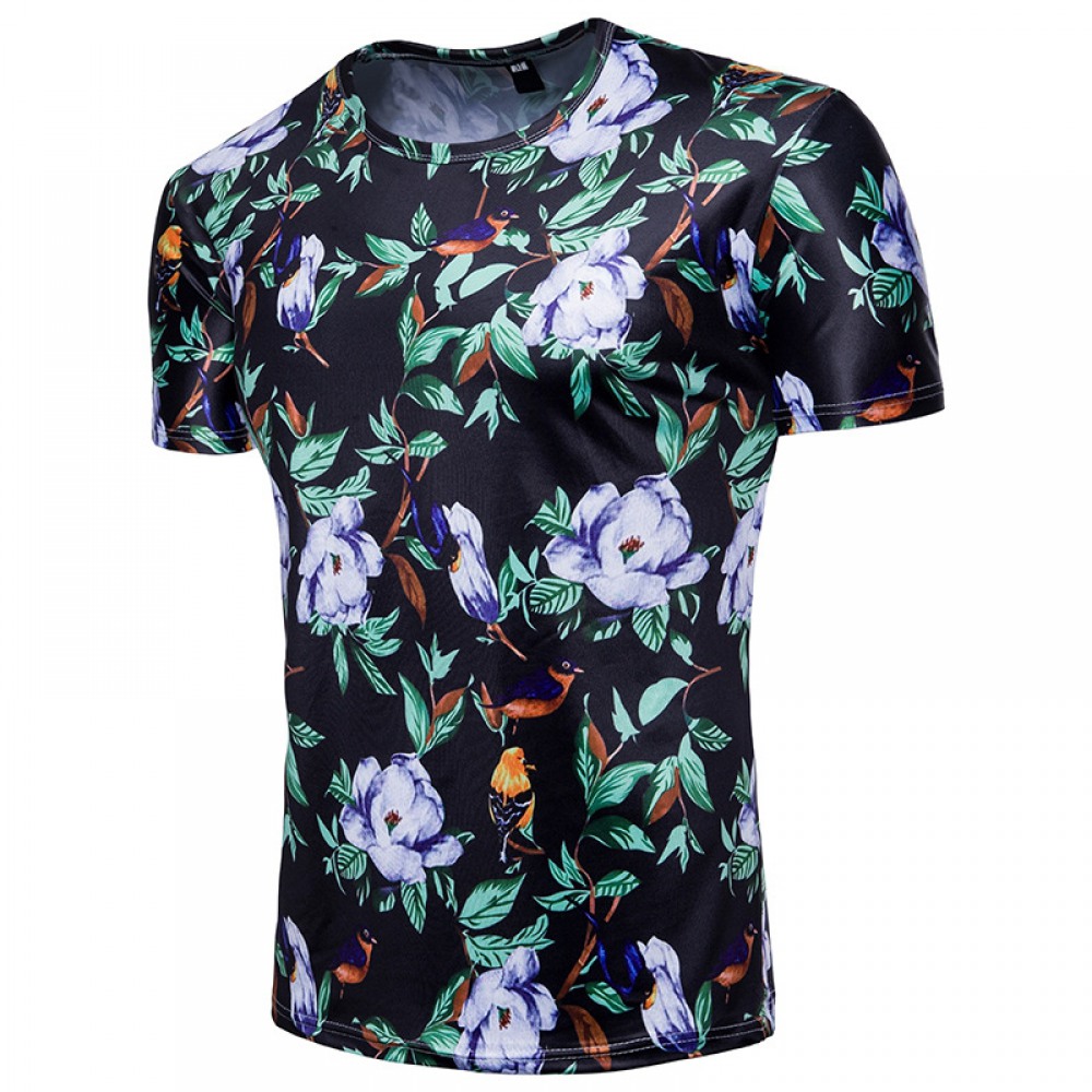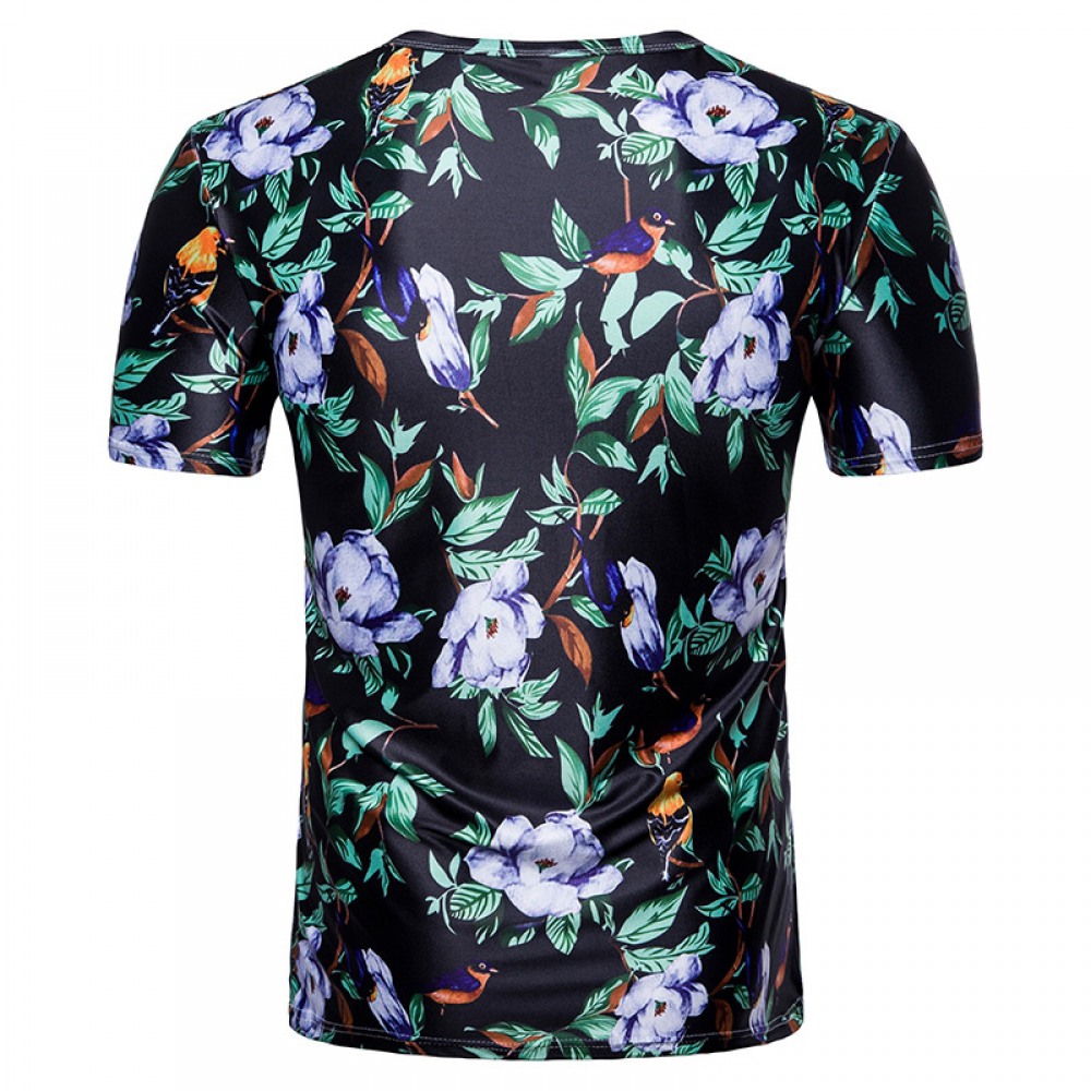 Men's 3D Printed Short-Sleeved T-Shirt Hawaiian Style Floral Printed Pattern Casual