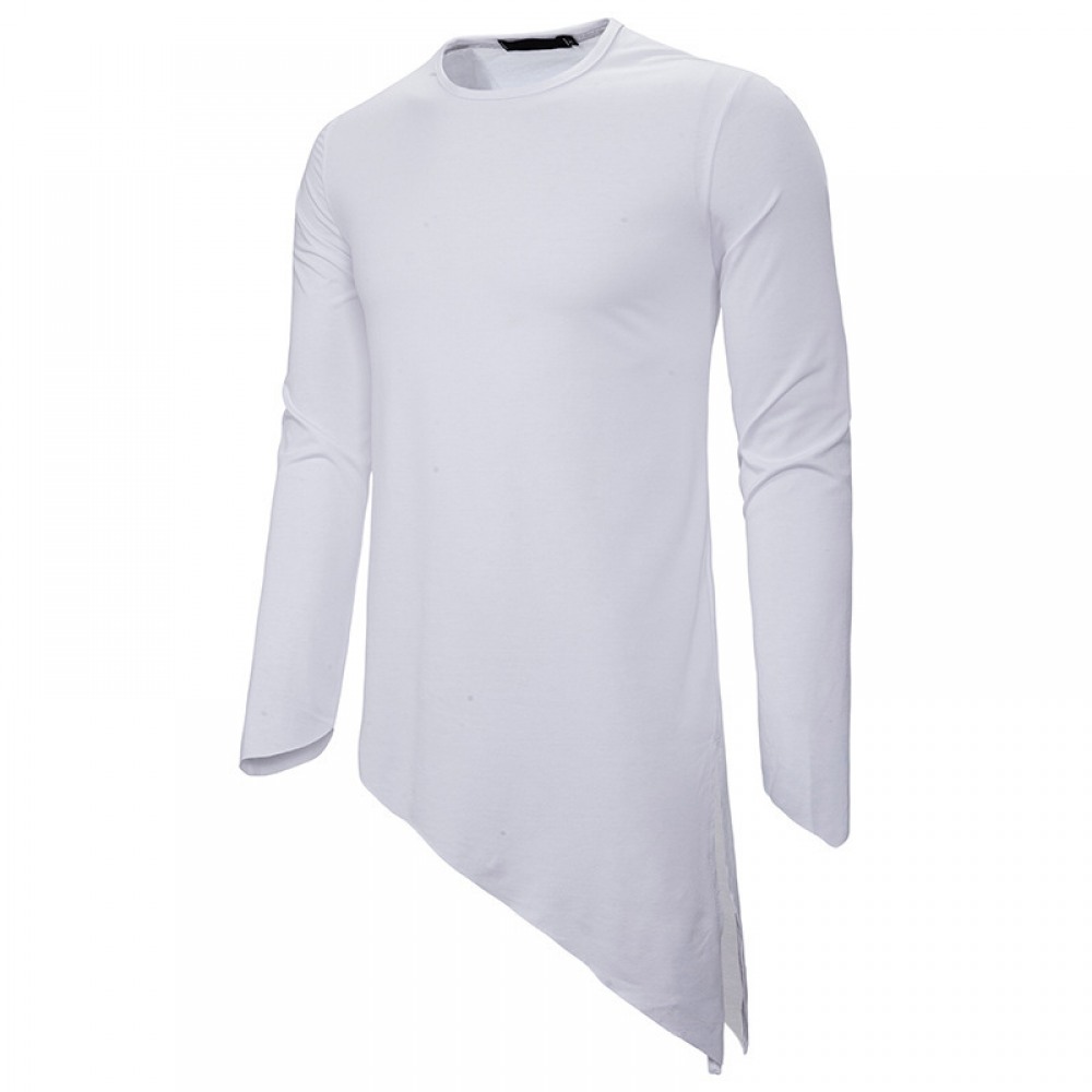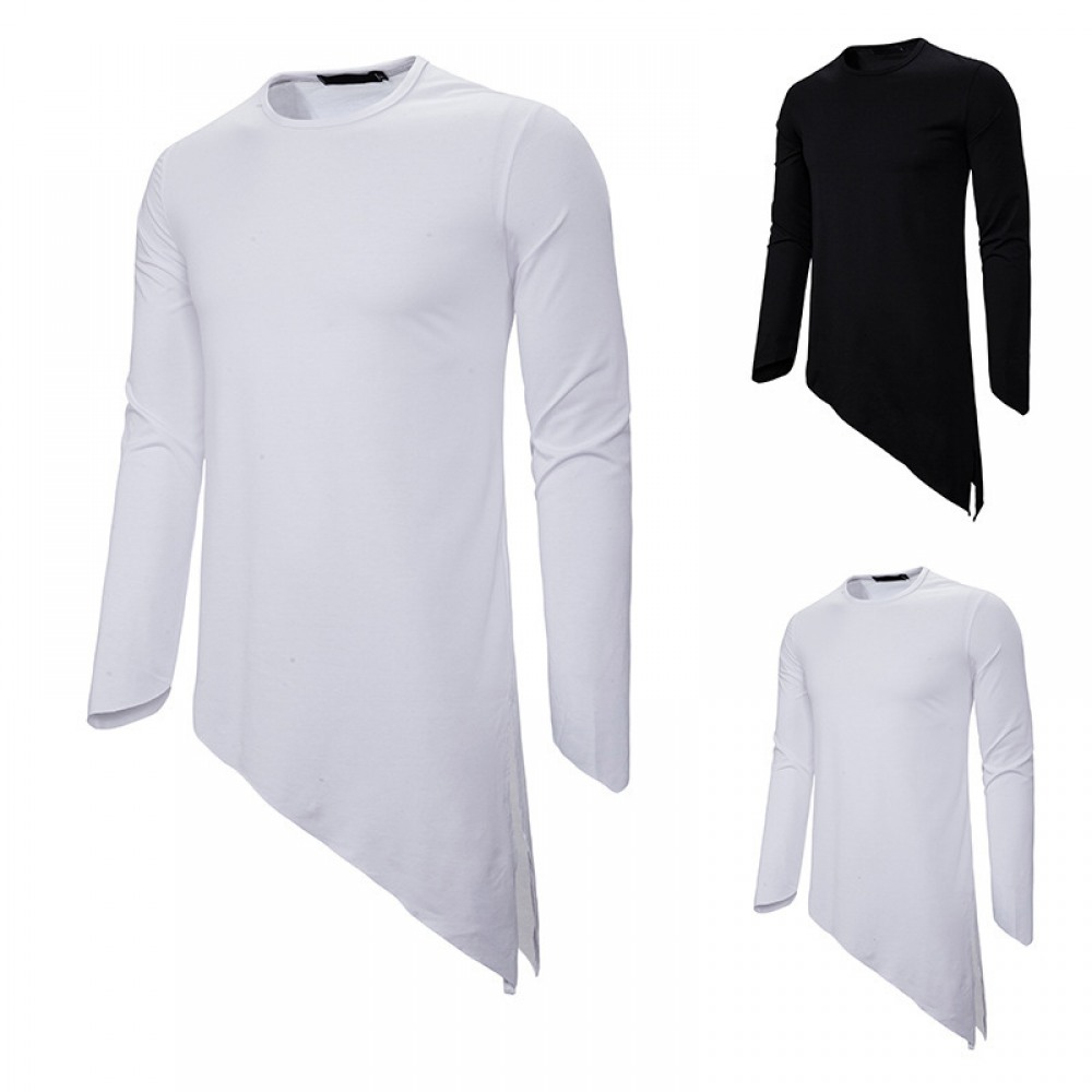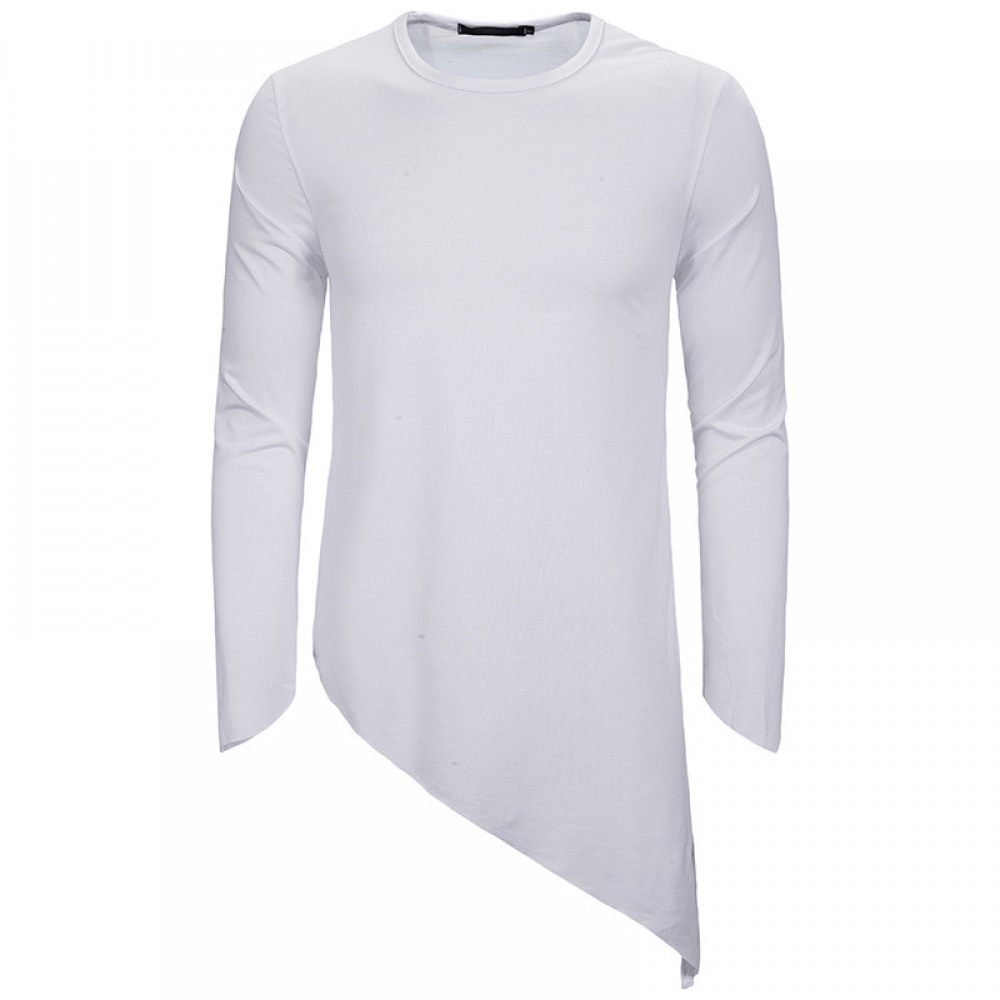 Men's Long-Sleeved T-Shirt Irregular Hem Pointed Casual T-Shirts