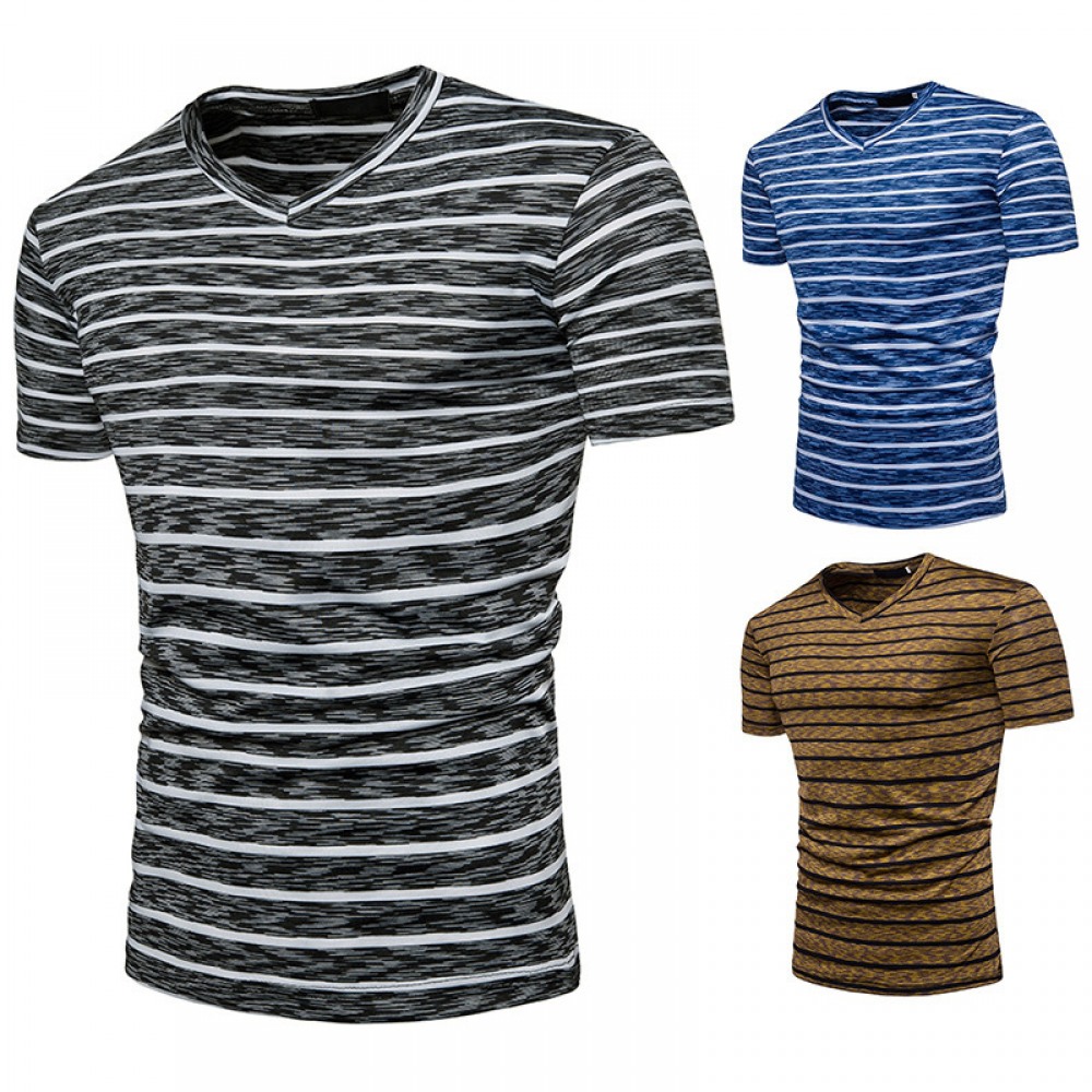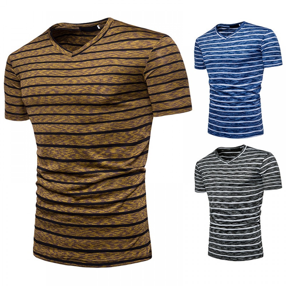 Men's Casual Fashion Striped T-Shirt Hot Sale Short Sleeve
