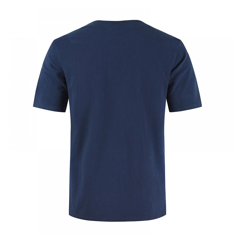 New Summer Men's Casual Street Short-Sleeved T-Shirt Cotton and Linen Lace Casual Fashion