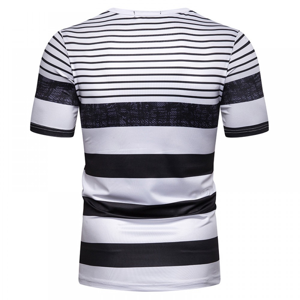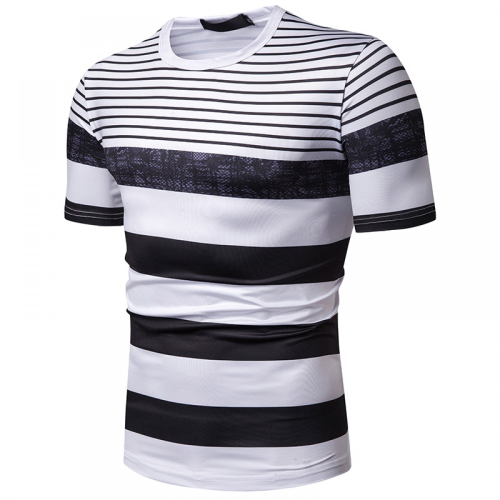 New Summer Men's Short-Sleeved T-Shirt Contrast Striped Slim Casual T-Shirt
