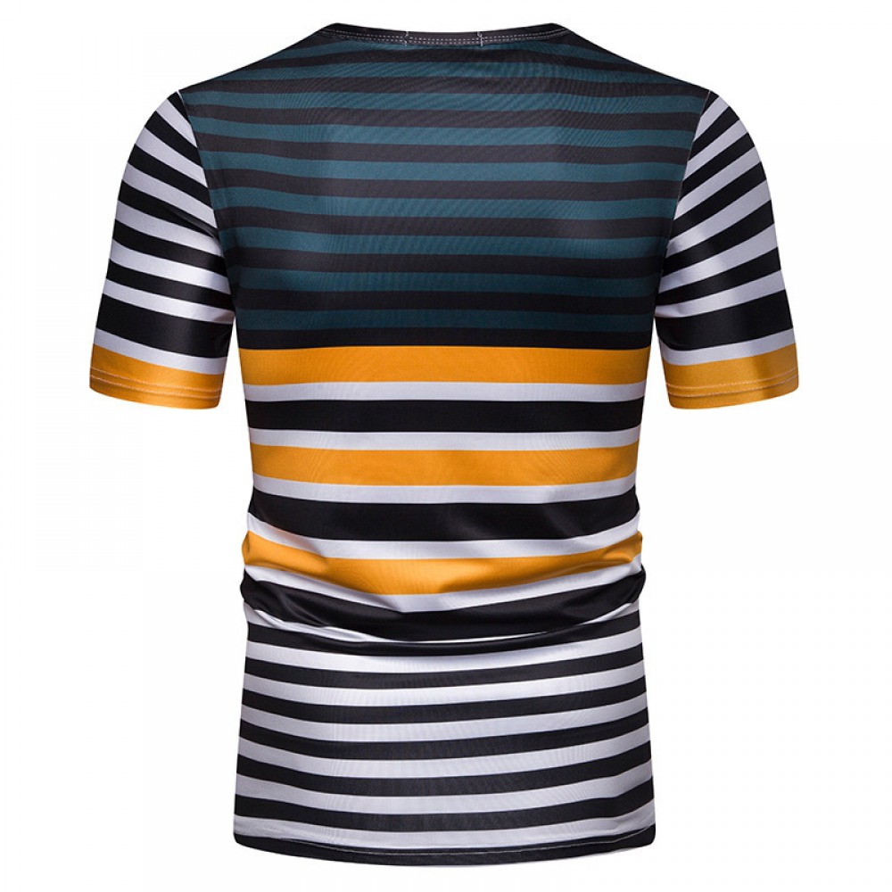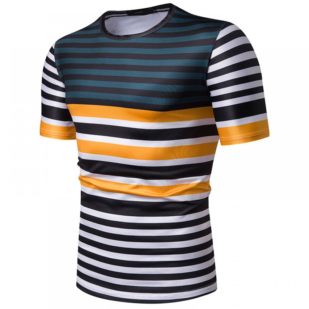 New Summer Men's Short-Sleeved T-Shirt Contrast Striped Slim Casual T-Shirt