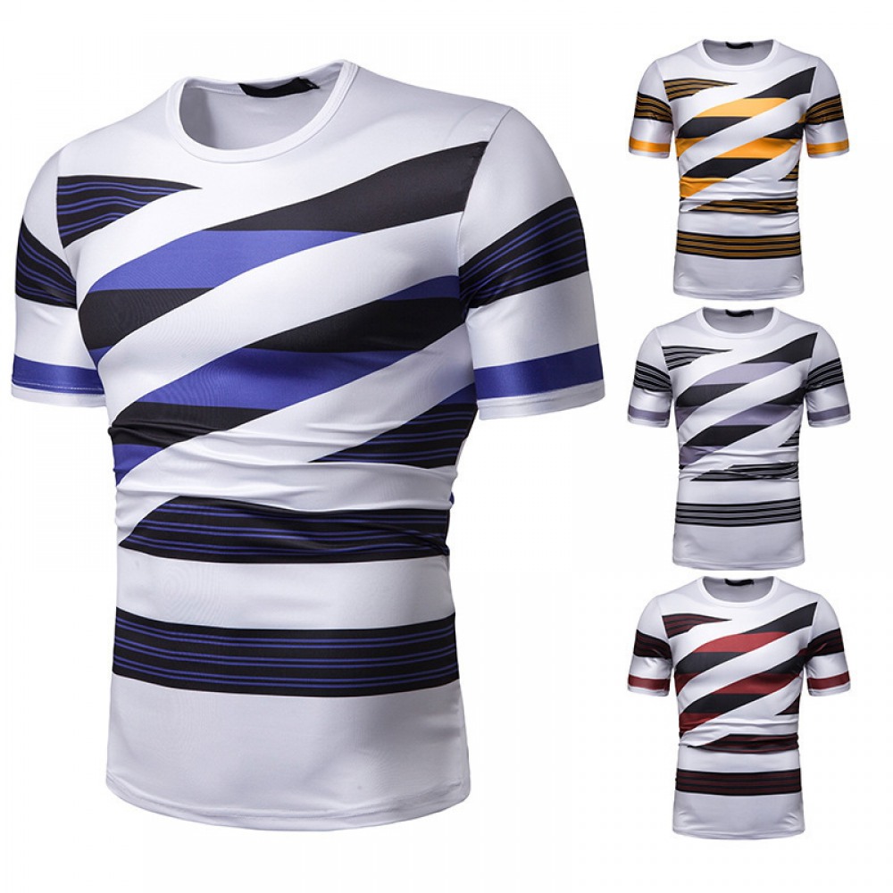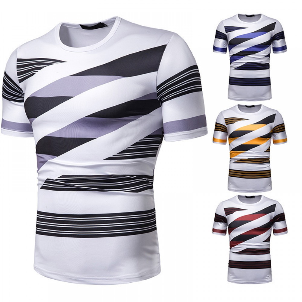 New Summer Men's Short-Sleeved T-Shirt Contrast Striped Slim Casual T-Shirt